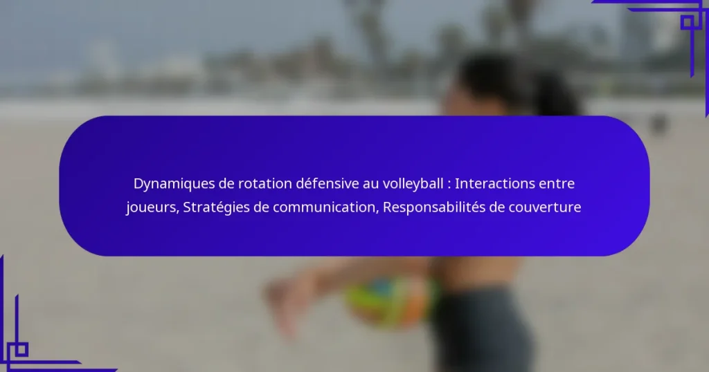 Dans le volley-ball, la dynamique de rotation défensive repose sur les interactions clés entre les joueurs, où la communication et le positionnement jouent des rôles essentiels. Comprendre les responsabilités de couverture individuelles est crucial pour un travail d’équipe efficace, permettant aux joueurs de se soutenir mutuellement et de s’adapter à la nature rapide du jeu. En favorisant une communication claire, les équipes peuvent améliorer leurs stratégies défensives et maintenir une couverture solide sur le terrain. Key sections in the article:…