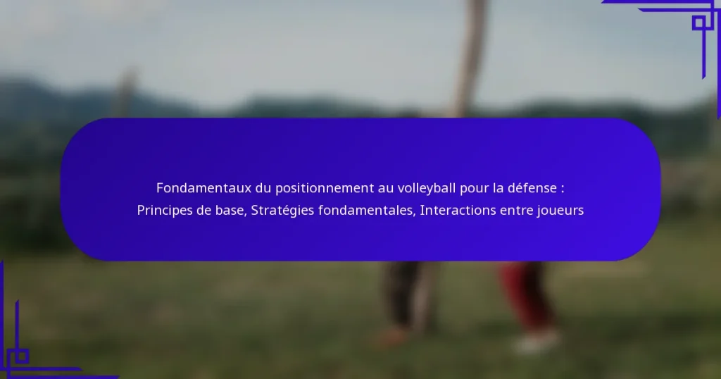 Les techniques de positionnement défensif au volleyball sont essentielles pour maximiser la capacité d’une équipe à réagir aux actions offensives. En employant des stratégies d’alignement clés, en maintenant un espacement approprié et en effectuant des ajustements en fonction des situations, les joueurs peuvent efficacement couvrir les lacunes et améliorer leur performance défensive globale. La communication et la prise de conscience des dynamiques du jeu renforcent encore la capacité des équipes à s’adapter et à renforcer leurs capacités défensives. Key sections…