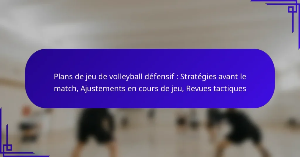 Plans de jeu de volleyball défensif : Stratégies avant le match, Ajustements en cours de jeu, Revues tactiques
