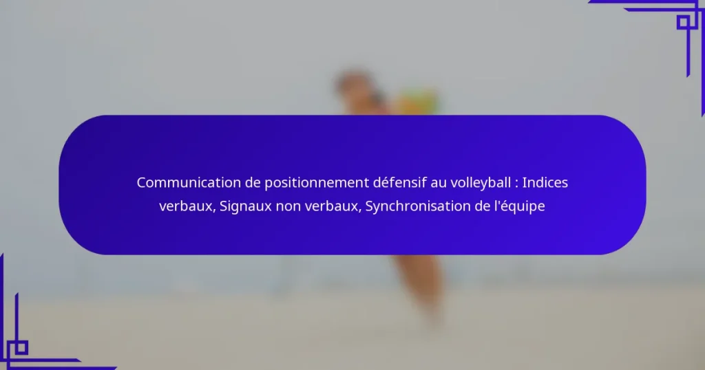 Communication de positionnement défensif au volleyball : Indices verbaux, Signaux non verbaux, Synchronisation de l’équipe