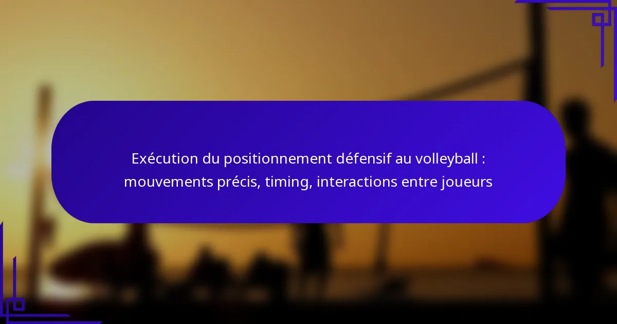 Le positionnement défensif au volleyball est essentiel pour contrer les attaques des adversaires et améliorer la performance de l’équipe. Il nécessite des mouvements précis, un timing exact et une communication fluide entre les joueurs pour anticiper et réagir efficacement aux actions. Maîtriser ces éléments maximise non seulement l’efficacité défensive, mais favorise également une plus grande cohésion d’équipe sur le terrain.