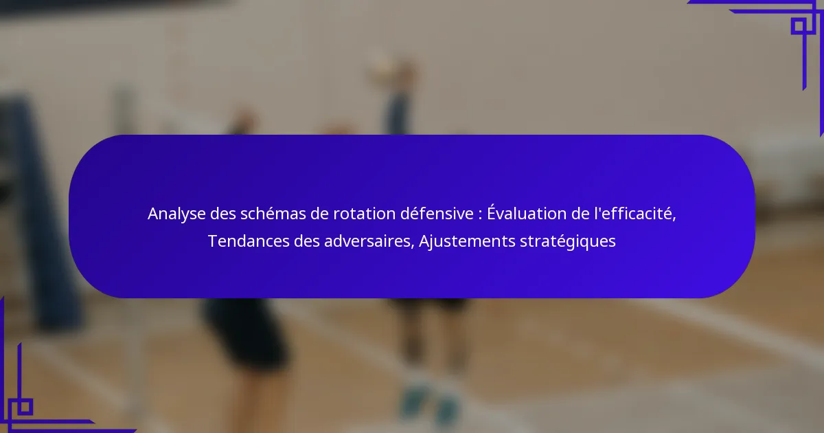 Les schémas de rotation défensive sont des stratégies essentielles que les équipes utilisent pour contrer les actions offensives tout en préservant leur structure défensive. Évaluer l’efficacité de ces schémas, ainsi que comprendre les tendances des adversaires, est vital pour effectuer des ajustements stratégiques éclairés qui peuvent améliorer la performance d’une équipe et minimiser les opportunités de marquer pour les rivaux.