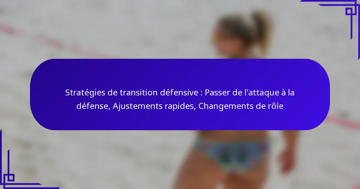 Dans les transitions défensives, les joueurs doivent rapidement adapter leurs rôles pour contrer efficacement les stratégies offensives de l’équipe adverse. Cela implique de comprendre les responsabilités individuelles et de faire des ajustements rapides pour maintenir la cohésion d’équipe et l’intégrité défensive.