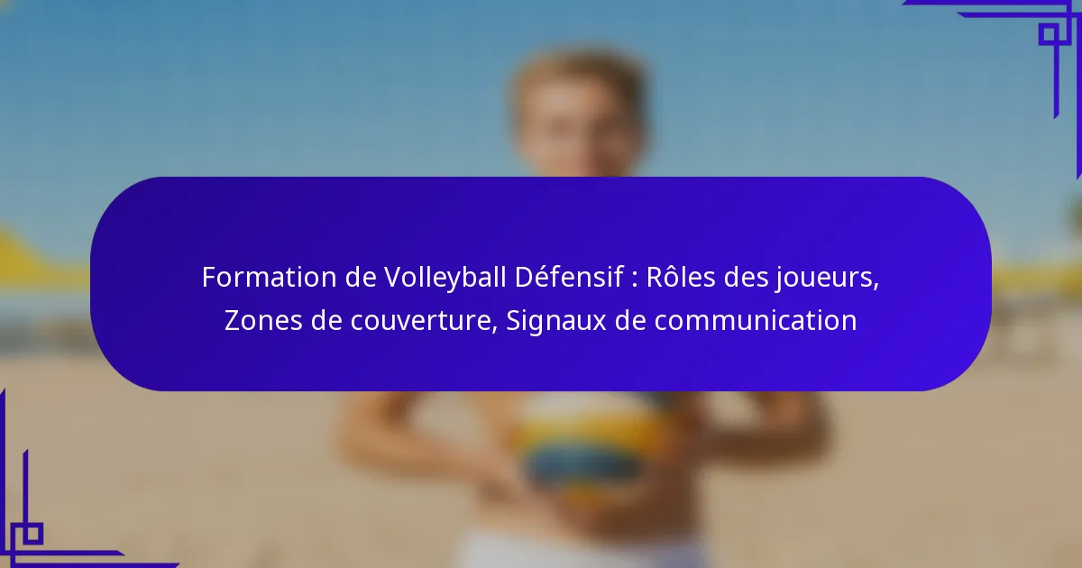 Dans une formation défensive de volleyball, chaque joueur a des rôles spécifiques qui améliorent la stratégie globale et la coordination de l’équipe. Les joueurs se voient attribuer des zones de couverture désignées pour protéger efficacement le terrain lors de l’attaque d’un adversaire. Des signaux de communication clairs sont cruciaux pour s’assurer que tous les membres de l’équipe comprennent leurs responsabilités et peuvent réagir rapidement aux situations de jeu dynamiques.