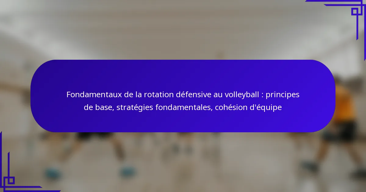 Quels sont les principes fondamentaux des rotations défensives au volleyball ?