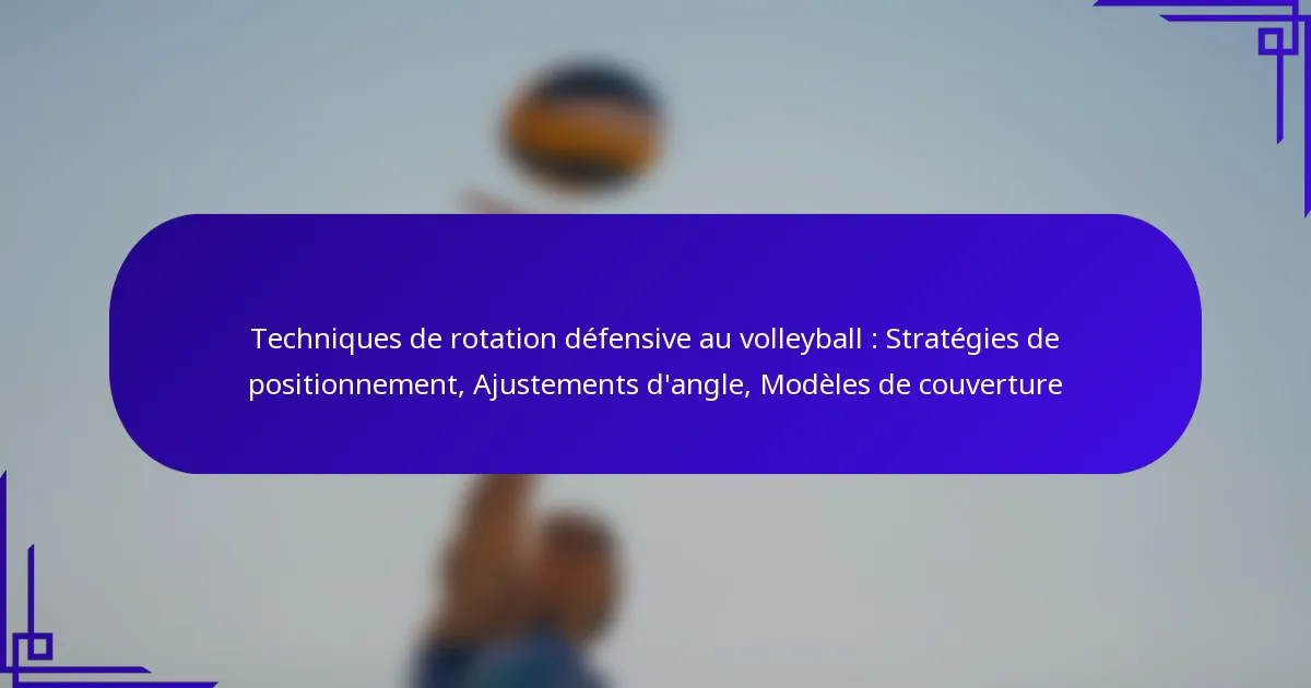 Dans le volleyball, des techniques de rotation défensive efficaces sont essentielles pour le succès d’une équipe sur le terrain. Les stratégies clés incluent la compréhension des rôles des joueurs, l’optimisation du positionnement et les ajustements d’angle nécessaires pour améliorer la couverture. En maîtrisant ces techniques, les équipes peuvent minimiser les espaces et améliorer leur capacité à réagir aux attaques des adversaires, assurant ainsi une défense plus robuste.