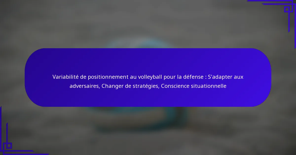 Dans le volleyball, un positionnement défensif efficace est essentiel pour maximiser la couverture du terrain et contrer les forces des adversaires. En observant leurs rivaux et en adaptant les stratégies en temps réel, les joueurs peuvent améliorer leurs capacités défensives et répondre à divers styles d’attaque. La conscience situationnelle joue un rôle critique, permettant aux défenseurs d’anticiper les actions et d’ajuster leur positionnement pour améliorer les temps de réaction et la performance globale de l’équipe.